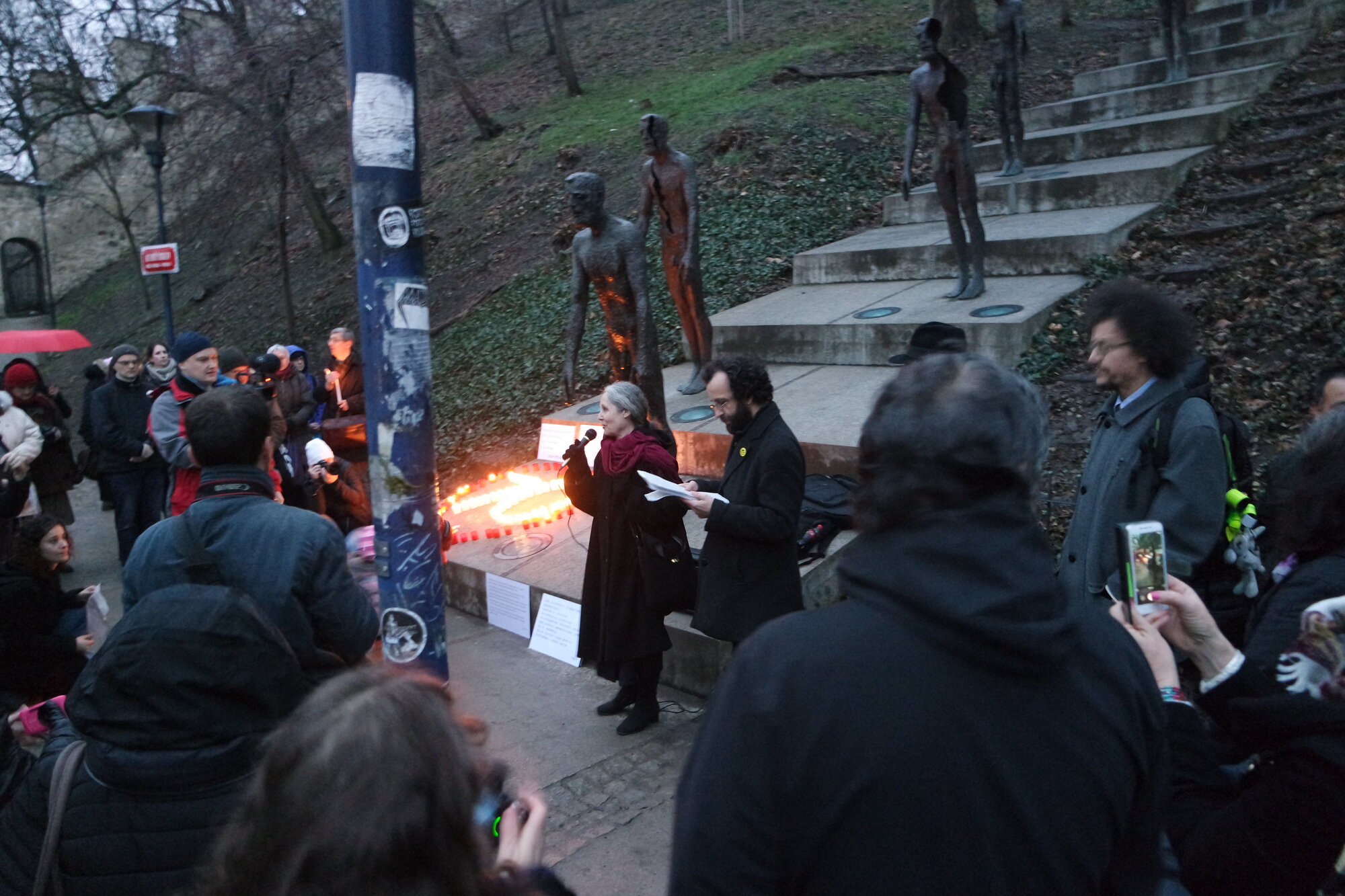 Na shromáždění promluvili také zástupci židovské a muslimské obce. Reformní Židovka Zuzana Schreiberová připomněla, že za druhé světové války se útočištěm prchajících Židů stala Šanghaj. Za pouhé dvě generace se ovšem vztah Číňanů k náboženským menšinám výrazně proměnil.