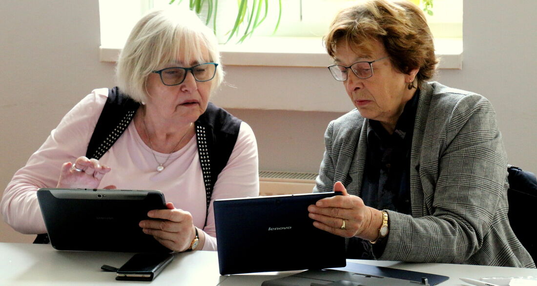 V prvním prosincovém týdnu se na jednom z kurzů scházelo osm seniorů: dva muži, šest žen. Někteří mají dotykové přístroje různých velikostí s sebou, jiní si je půjčí od vedoucího kurzu. Je ovšem poznat, že starší generace i přes zájem o moderní technologie hezky konzervativně spoléhá na záznamové postupy prověřené staletími: na stůl si každý vedle elektronického přístroje položí tužku a papírový zápisník na poznámky.