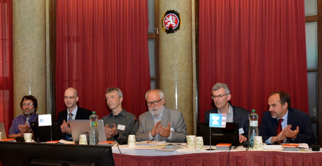 nové předsednictvo synodu – zleva: V. Buzek, J. Pavlis, D. Fojtů, J. Gruber (předseda), J. Plecháček, M. Pfann[/caption]