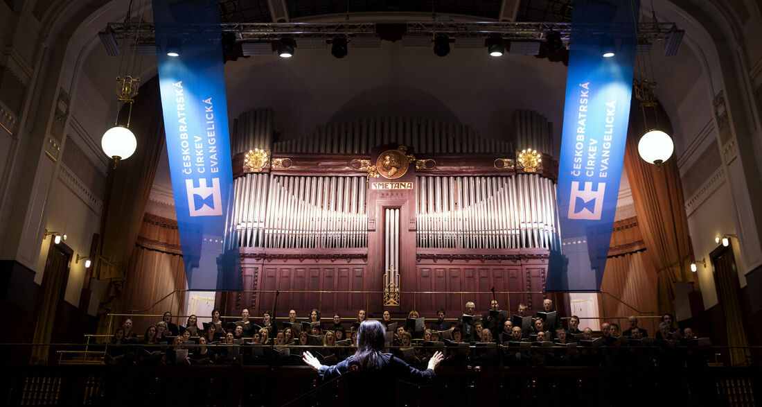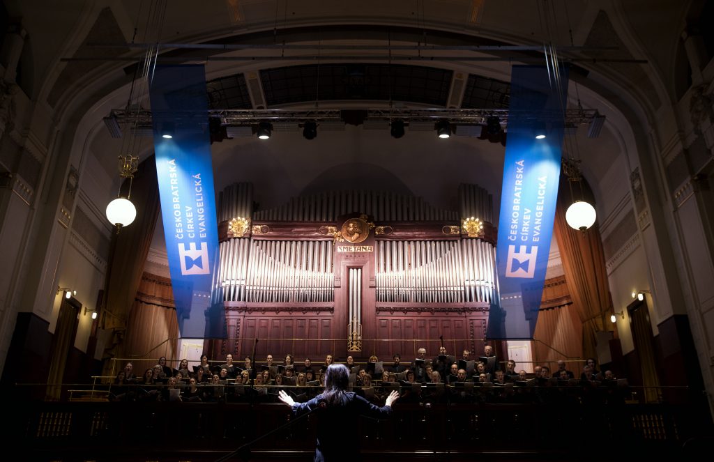 Slavnostní provedení písně při 100. výročí církve v Obecním domě v Praze, diriguje Martina Matušková. Foto: Eva Kořínková[/caption]