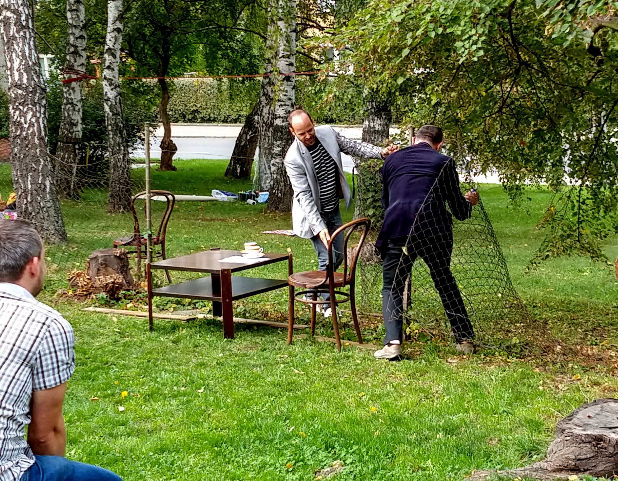 „Teď už se nám i to kafe bude spolu pít lépe,“ konstatovali Petr P. s Petrem M., každý si znovu oblékl své sako a kávu spolu dopili už bez plotu mezi sebou.