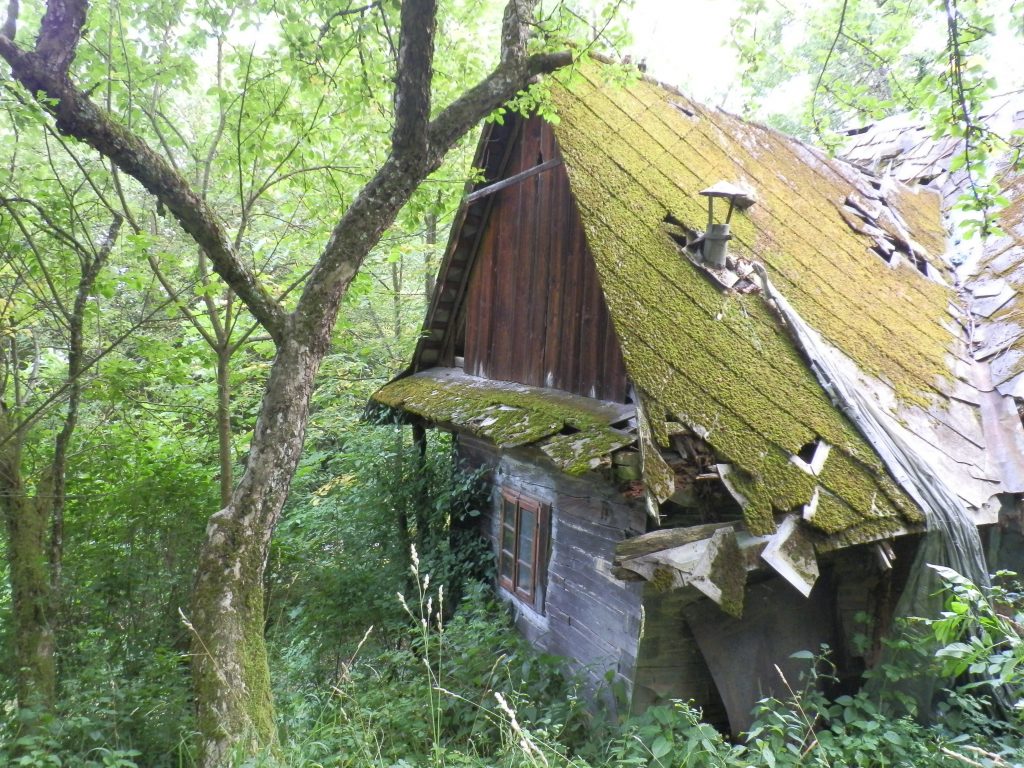 Vyškrábaly jsme se do sedla, kde se schovává vesnice s bývalou školou. A dále nahoru na louky nad polorozpadlými domky na Zdenčině rodné samotě. Rozhlížíme se z louky, vonící mateřídouškou, do kraje kolem – nad sebou jen ticho, občas přelétne dravec, vlny modrých hřebenů hor v dáli. Tu najednou chápeme, proč tady na tom místě, snad možná i nějak blíž k nebi, člověk zatoužil kdysi bydlet. Svědčí to o jejich nezdolnosti a společné víře.