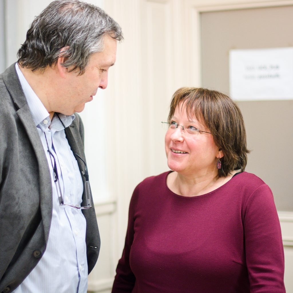 Po odchodu Olivera Engelhardta jsme momentálně v ekumenickém oddělení čtyři – já se věnuji záležitostem kolem vztahů (delegáti do zahraničí, návštěvy ze zahraničí, organizace různých akcí, setkání apod.), Jana Špinarová má na starosti projekty, které souvisí se zahraničními dary, organizuje neoficiální návštěvy skupin z Německa a stará se také o některé putovní výstavy, jejichž přípravu naše oddělení organizuje. Kolega David Sinclair je vlastně zaměstnanec Skotské presbyterní církve a má na starosti partnerství našich sborů se sbory ve Skotsku a ve Spojených státech, pomáhá s překlady a korekturami našich textů, učí angličtinu a je vůbec naší podporou v anglickojazyčné oblasti. Na malinký úvazek je tu s námi také Gerhard Frey-Reininghaus (někdejší vedoucí, nyní již v důchodu), který umí všechno a vypomáhá, kde je třeba. Jsem ráda, že tvoříme tým, který umí spolupracovat, případně jeden druhého i zastoupit, když je potřeba.