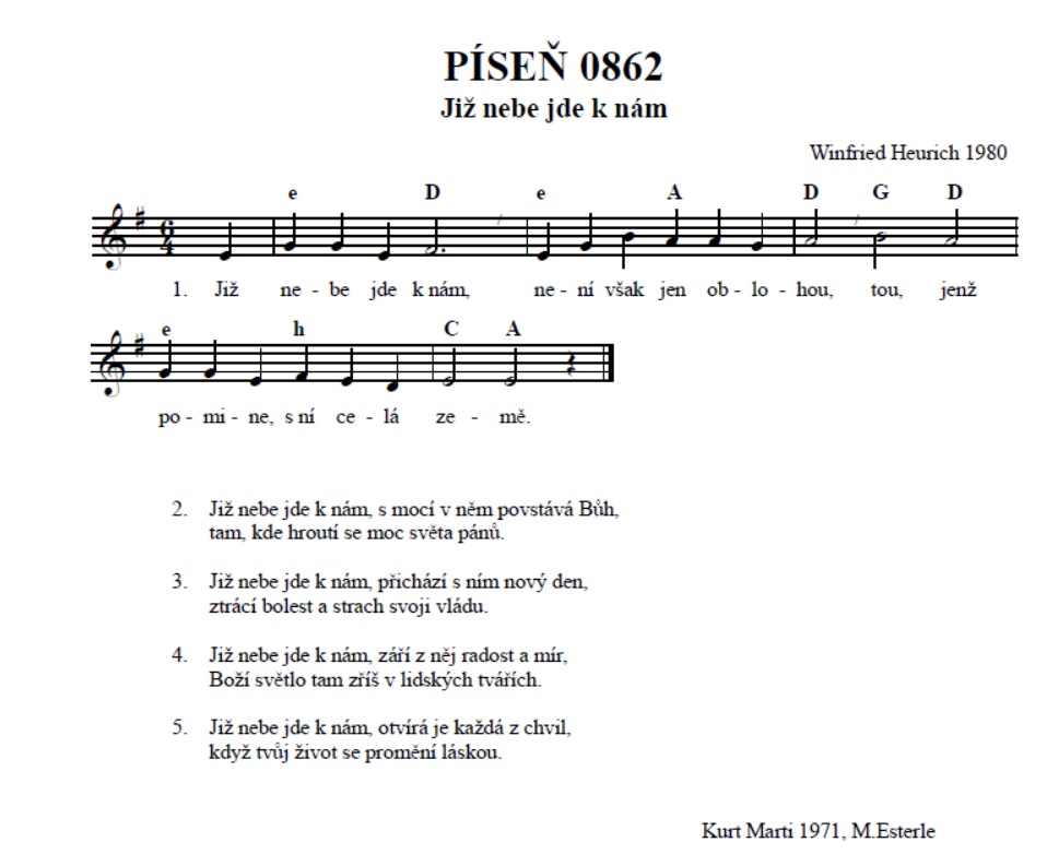 Poslechněte si článek:[audioplayer file="http://www.ceskybratr.cz/wp-content/uploads/2019/04/CB_2019_2_03_21_Cirkev_zpivajici_Jiz_nebe_jde_k_nam.mp3" titles="Církev zpívající: Již nebe jde k nám" artists="Český bratr" track="00213E"]Zaujalo ho rčení tehdejšího německého spolkového prezidenta Gustava Heinemanna (1899–1976): „Vaši páni odejdou – náš Pán ale přijde!“. Jsou to slova, která tento politik přednesl pod heslem „Věřte v zachránce!“ při druhém německém evangelickém Kirchentagu v Essenu (1950). Heinemannův citát Marti volně upravil do slov: „Páni světa přicházejí a odcházejí – náš Pán přijde.“ Tohle motto je trefná aktuální kritika mocipánů jednoho čestného politika z minulého století a zároveň odvážné vyznání křesťana, který má za sebou nejisté zkušenosti v politické sféře.
