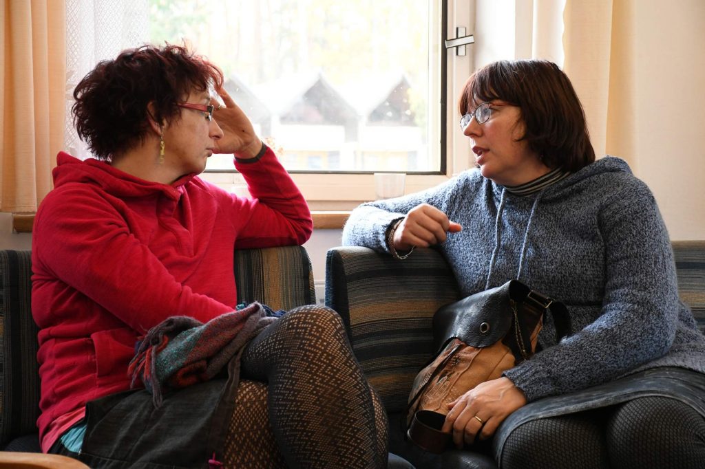 Helena Wernischová (vpravo) v rozhovoru se školní kaplankou Martou Židkovou[/caption]