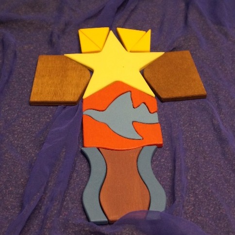 Z jednotlivých barevných částí jsme složili kříž. Na kříži Ježíš končí svůj pozemský život, zároveň začíná něco nového, po vzkříšení se rodí církev, symbolizuje ji kříž…