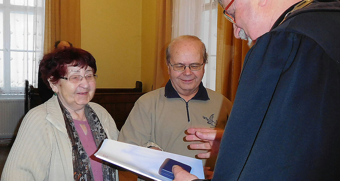 Při bohoslužbách 3. února synodní senior Daniel Ženatý předal Medaili vděčnosti dvěma členům děčínského sboru, sestře Věře Lindnerové a bratru Jiřímu Černíkovi.