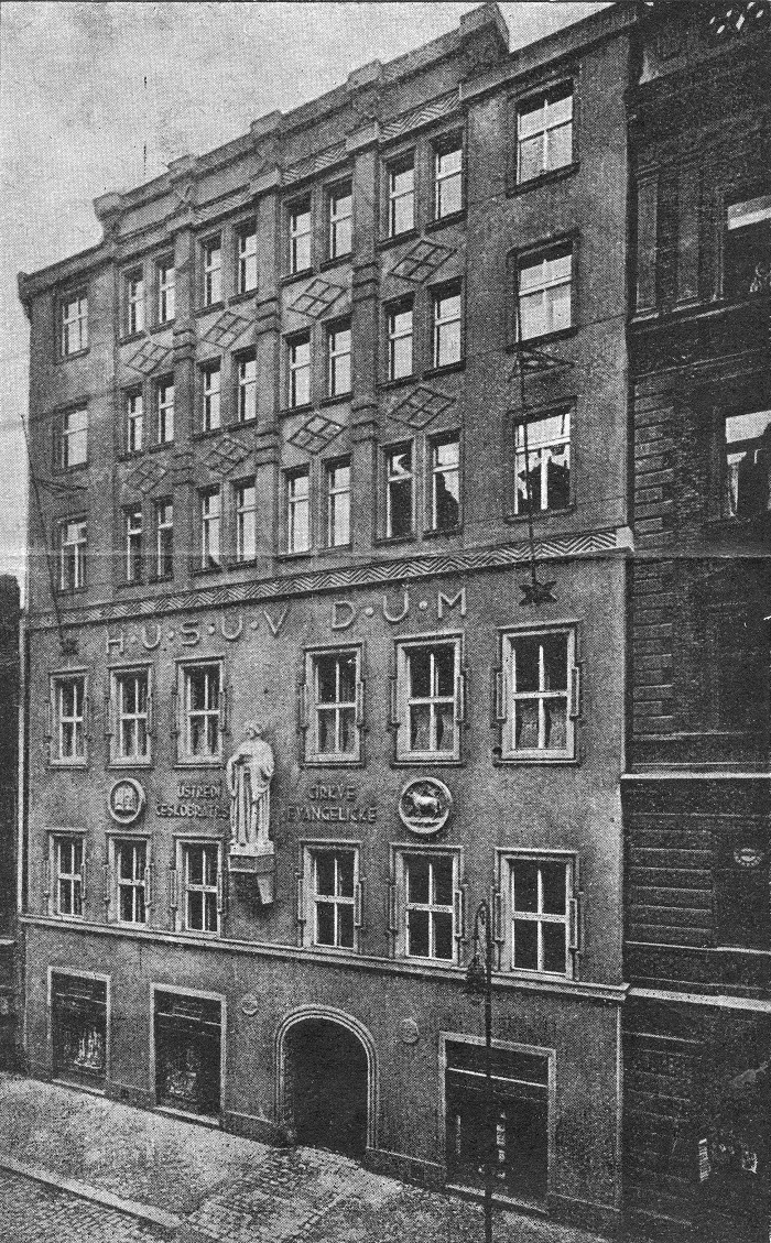Ačkoliv už v roce 1915 vypracoval architekt O. Polívka plán přestavby na celé ploše pozemku, k její realizaci prozatím nedošlo a v přední budově byla otevřena pouze bohoslovecká domovina Husova domu. V říjnu 1918 byl pak zde zbudován sál pro 200 osob, knihovna s čítárnou, začaly se pronajímat spolkové místnosti a sídlila zde Kostnická jednota s redakcí Kostnických jisker. Po spojení protestantských církví v závěru toho roku začal v domě sídlit synodní výbor a jeho odbory. V roce 1920 pak byly změněny stanovy spolku a dům přešel z majetku reformované církve do majetku nově ustavené Českobratrské církve evangelické.