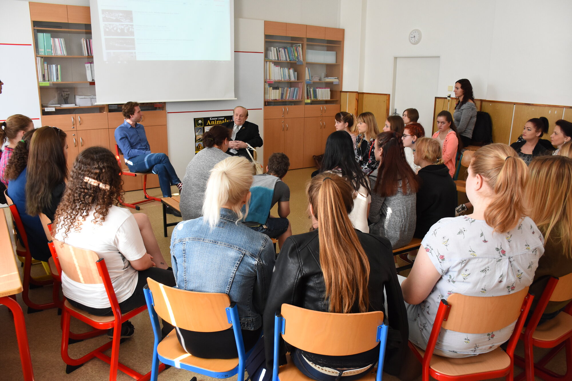 Pavel Fried prožil část dětství v terezínském ghettu, kam přišel se svou maminkou jako jedenáctiletý. Vyprávěl o zrůdném procesu izolace a postupné likvidace židovského obyvatelstva po nástupu nacistů k moci. Osobní zkušenosti z opakovaného věznění v 50. letech minulého století studentům přiblížil Vladimír Stehlík, který přišel v doprovodu Michala Doležela, zastupitele Jihomoravského kraje. On sám dosud aktivně pracuje v brněnské pobočce Konfederace politických vězňů. Z přednášky dr. Hazdry, který přítomné provedl osmičkovými letopočty 1918, 1938 a 1968, vyplynulo hlavně poznání, že demokracie nikdy není samozřejmostí. Do aktuální problematiky migrace a pomoci uprchlíkům nás uvedl Milan Votýpka, aktivista neziskového sektoru, který pracoval jako vedoucí české skupiny dobrovolníků na srbsko-chorvatské hranici. A jako poslední Jakub Krainer oslovil přítomné informacemi o možnostech občanského aktivismu a zdařile je zapojil do skupinové práce na přípravě demonstrace s tématem, které si sami zvolili.
