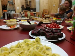 Naše společné večeře se řídí pravidlem: Když přinese každý trošku, odcházejí všichni s plným břichem. Vítáme všechno od rohlíků přes tlačenku až po nadívané lanýže. Invenci se meze nekladou a v případě potřeby máme k dispozici i plně vybavenou kuchyň. Přitom je ovšem důležitější raději přijít s prázdnou nebo s předvčerejším chlebem než nepřijít vůbec!
