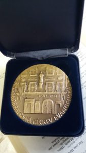 celoživotní a obětavou službu, konanou až donedávna s precizností a tvrdohlavostí jemu vlastní, vhod i nevhod a včas i nevčas, obdržel týž den z rukou synodního seniora Medaili vděčnosti s pamětním listem, psaným v jeho rodném jazyce. Ke slavnostnímu předání došlo u něho doma, neboť bohoslužeb se pro stáří a nemoc už nemůže účastnit. Tak jako on, i my jsme Pánu Bohu převelmi vděčni.