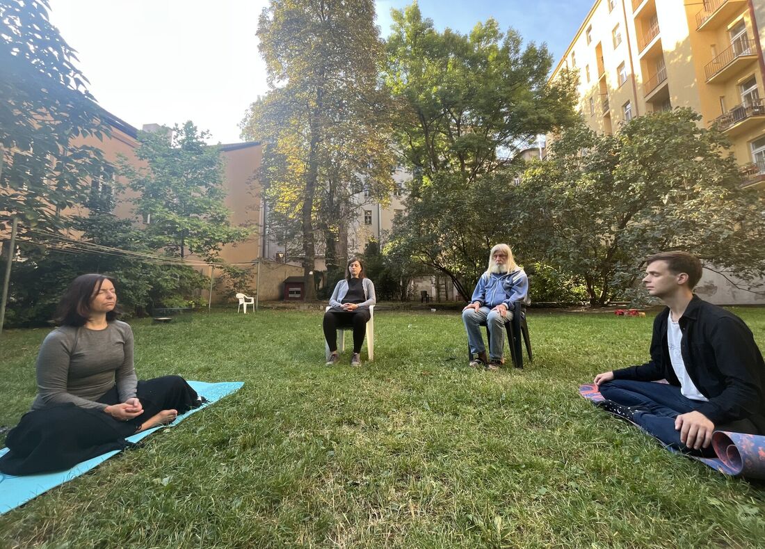 Setkání se konala ve vnitrobloku zahrady sboru Praha-Žižkov II. Zahrada, osvícená ranním sluncem či svitem měsíce za večera, skýtala v srdci města lidskými kroky neposkvrněný prostor. Vzruchy, které přicházely, mnohdy nepocházely ze zahrady a někdy prověřovaly s pečlivostí naši trpělivost a jindy zase humor. Vybavuji si, jak se při jedné z večerních meditací ozval z jednoho z okolních bytů rázný znělý hlas: „Okamžitě si padejte vyčistit zuby!“ Jindy jsme se setkali s ranním deštěm a po chvíli setrvání kdosi z účastnictva prohlásil, že ho déšť při meditaci vyrušuje – když jsme se potom tedy přesunuli do vnitřních připravených prostor druhé volby – spustily o patro výš vrtačky od sousedů.