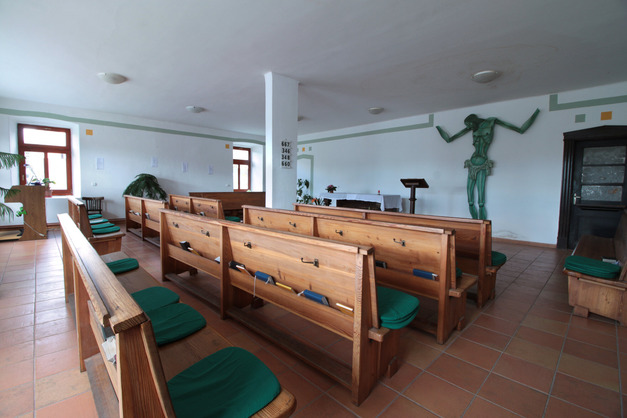 Českolipského Spasitele Ondřej Rada původně vyrobil pro stánek Ekumenické rady církví na jednom z německých Kirchentagů, ale do prostoru místní modlitebny zapadl velmi dobře. Do vyzáblé postavy zmučeného Krista, ale s klidným výrazem tváře, si pak každý může projektovat své představy, bolesti i radosti. Pro umělce to byly třeba hladovějící děti v africké Etiopii.