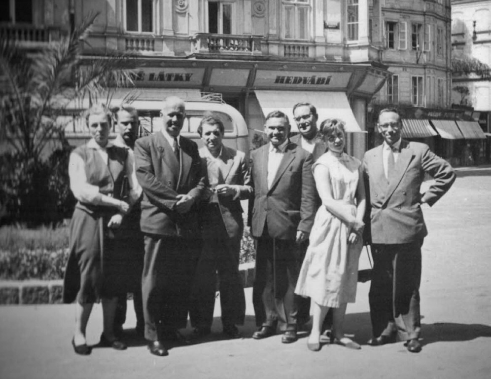 Rok 1957, první cesta za železnou oponu. D. Kuhrau v bílých šatech[/caption]