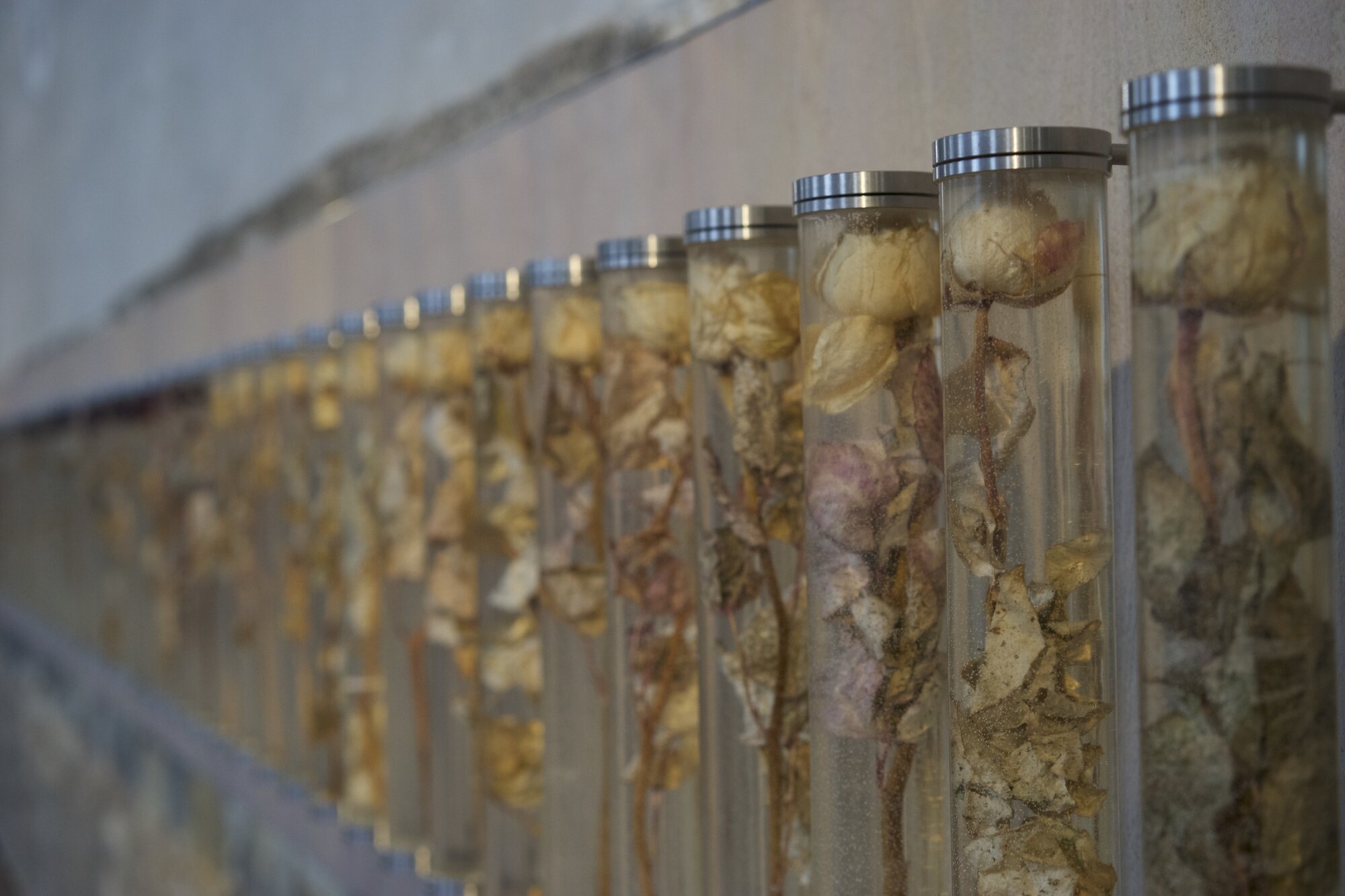 Každou z nich zalil do transparentní pryskyřice v pryskyřičném válci. Ať se růže uchovají. Ale idea je ještě hlubší. Havlova trvalá myšlenka žití ve svobodě se promítala i do přátelství s tibetským dalajlámou a do podpory jeho boje za svobodu Tibeťanů. „Růžové“ válce jsou otočné, mají tak tedy upomínat k tibetským modlitebním mlýnkům, ale potažmo i k mlýnům Božím. Ty melou sice pomalu…